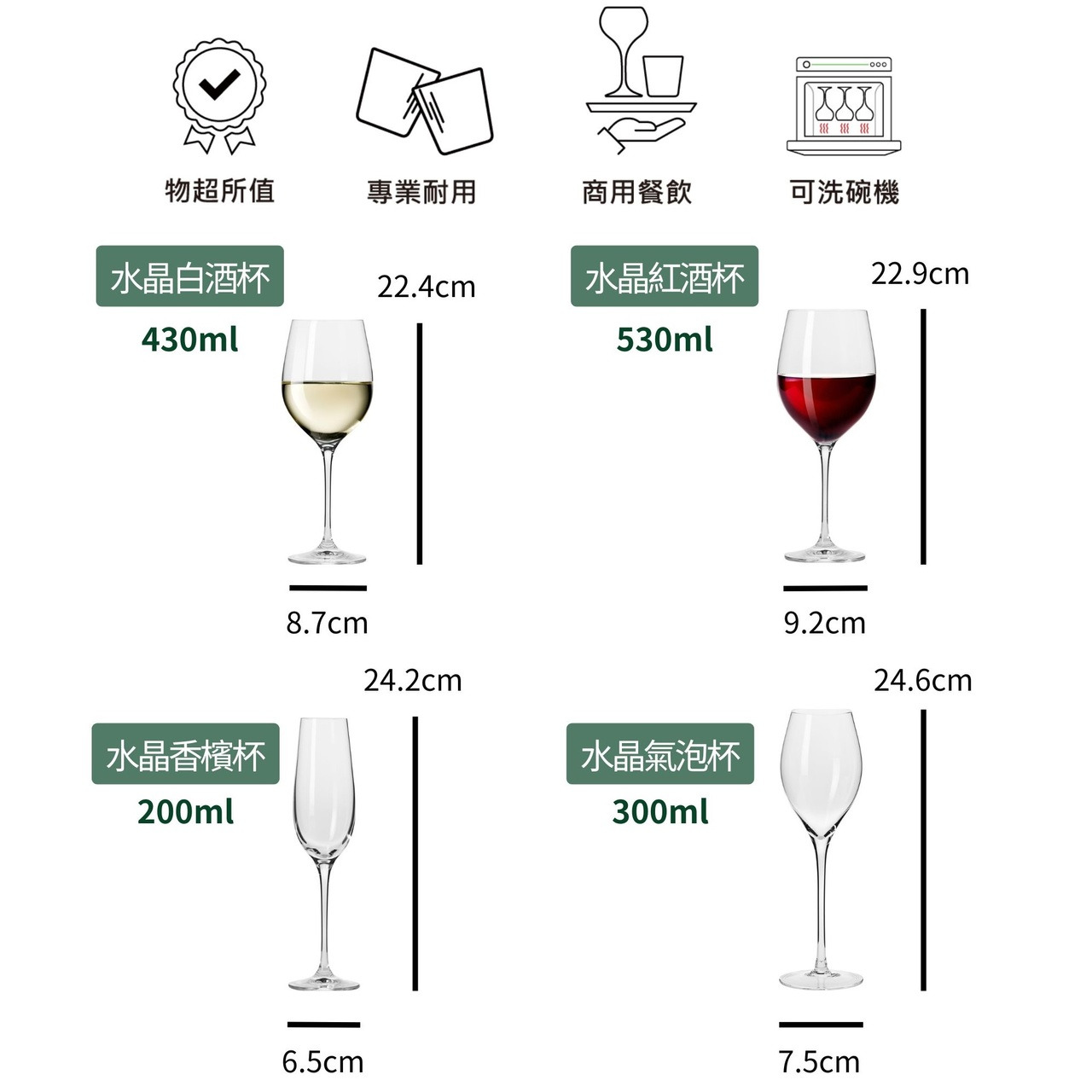 • 多款酒杯選擇