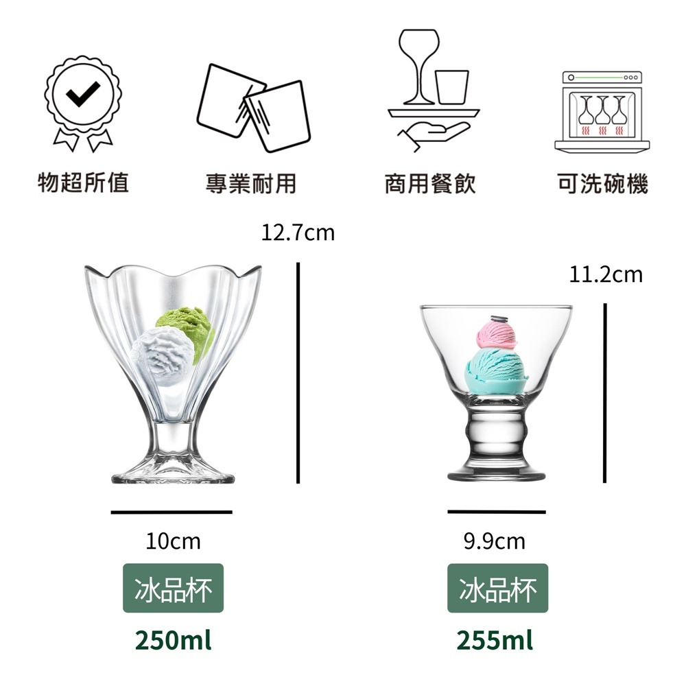 冰品與甜點杯系列以 厚實玻璃與透明杯身 為特色,兼具美觀與實用,是冰淇淋、果凍、布丁、甜點或冷飲的理想杯款。
