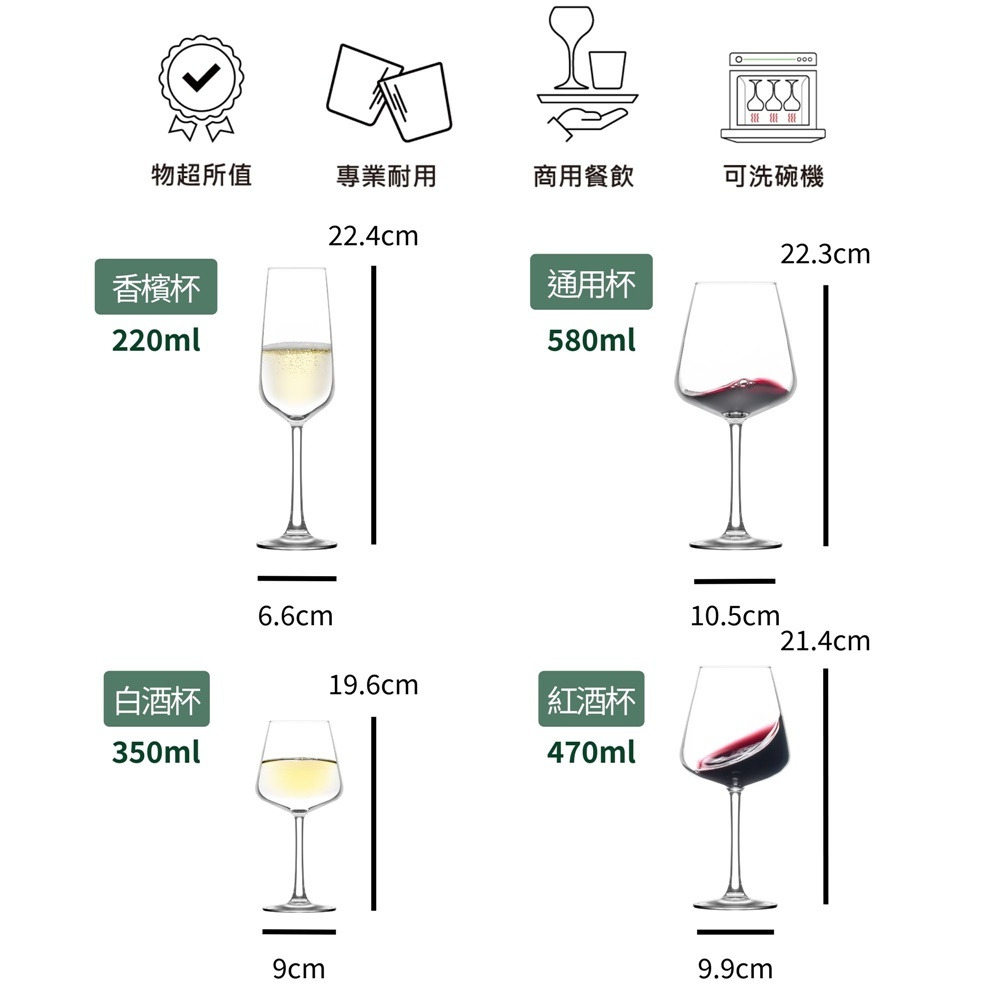 從香檳、白酒、紅酒到通用杯,一次滿足