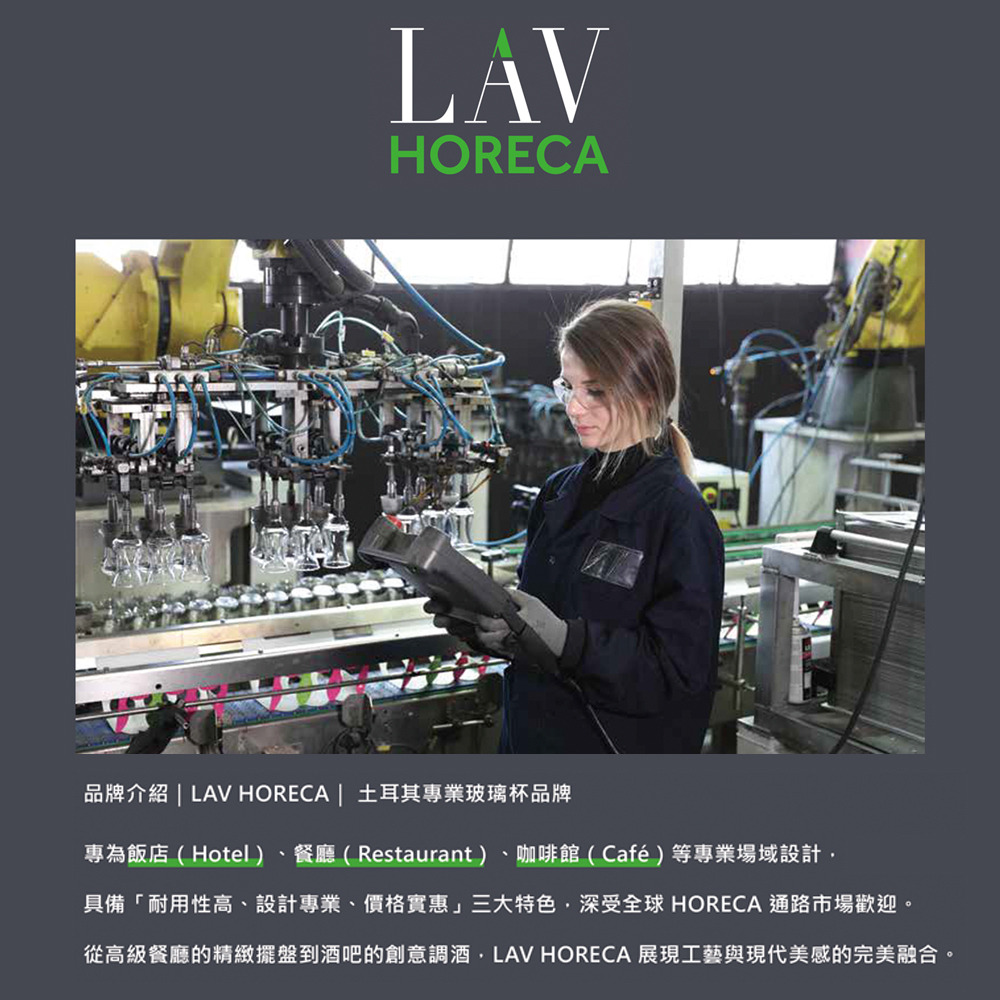 LAV 為土耳其知名玻璃品牌,HORECA 系列專為 餐廳、酒吧、飯店與居家品飲 設計。