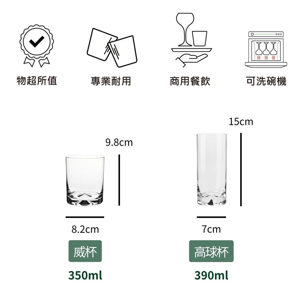 KROSNO 為波蘭百年水晶玻璃品牌,經典調酒系列以穩重比例與清晰線條打造,適合威士忌、經典調酒與高球飲品,兼具實用性與美觀感,是居家調酒或酒吧專業環境的理想選擇。
