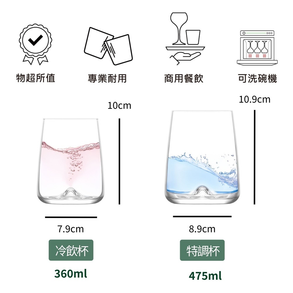 維也納細緻平底杯以 穩定杯型與清透杯壁,完美呈現冰塊與飲品層次,是調酒與冷飲的理想選擇。