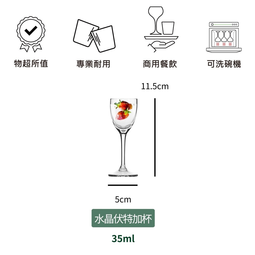 來自波蘭百年水晶玻璃品牌 KROSNO,專為伏特加與烈酒設計的 35cc 調酒水晶杯,杯型簡約俐落,容量精準,是酒吧與居家調酒不可或缺的經典杯款。