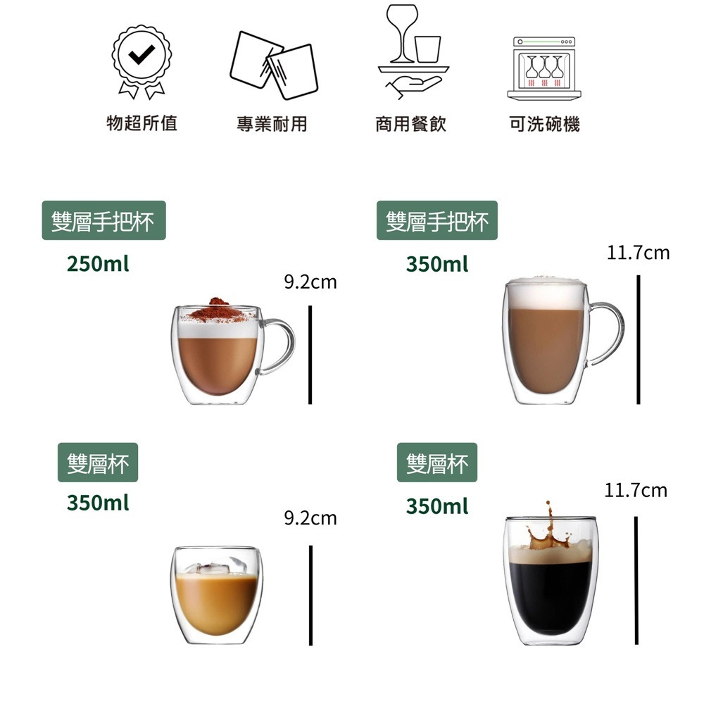 雙層玻璃設計,有效隔絕溫度不燙手、不冒水珠,兼顧實用與視覺美感。無論是咖啡、茶飲、冷飲或甜點杯,都能呈現飲品懸浮般的清透層次,是居家與辦公室必備的萬用杯款。